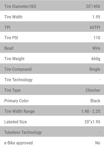 Maxxis, Hkwrm, 20x1.95, Wire, Single, Clincher, 60TPI, 110PSI, Black