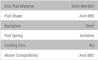 Jagwire, Mountain Sport, Plaquettes de frein a disque, Semi-metallique, Avid BB5 / Promax