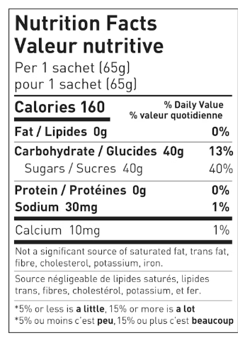 Hydrogel based energy gel made from calcium, electrolytes and carbohydrates. One ready-to-eat serving of