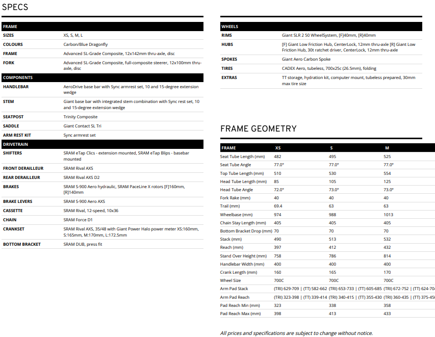 AeroSystem Shaping Technology with truncated ellipse tubing for a 5.9-watt aero advantage and greater stiffness-to-weight ratio over previous generation Trinity. In addition, the hydration reservoir, bottles and bento box form an aero-optimized, integrated fueling system.